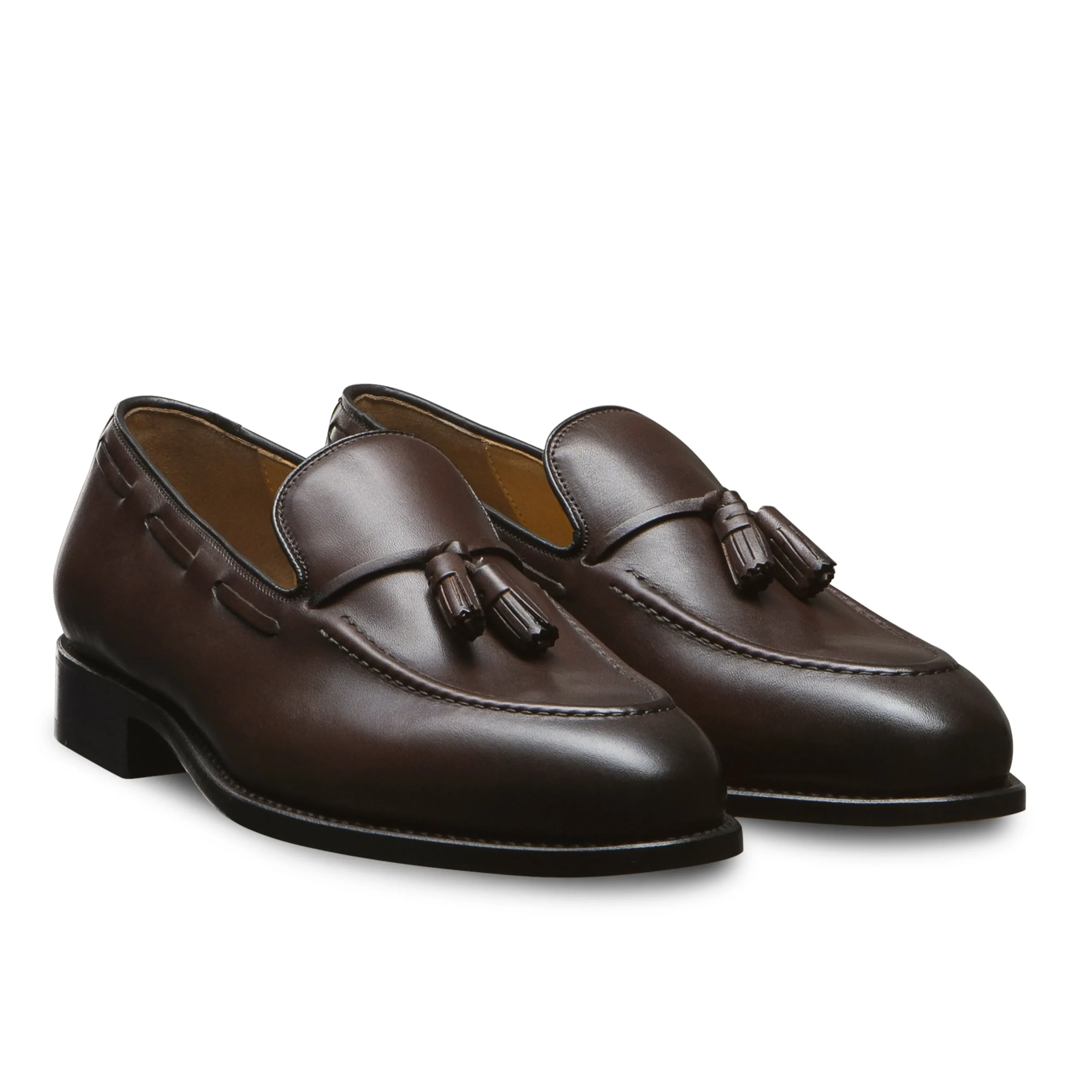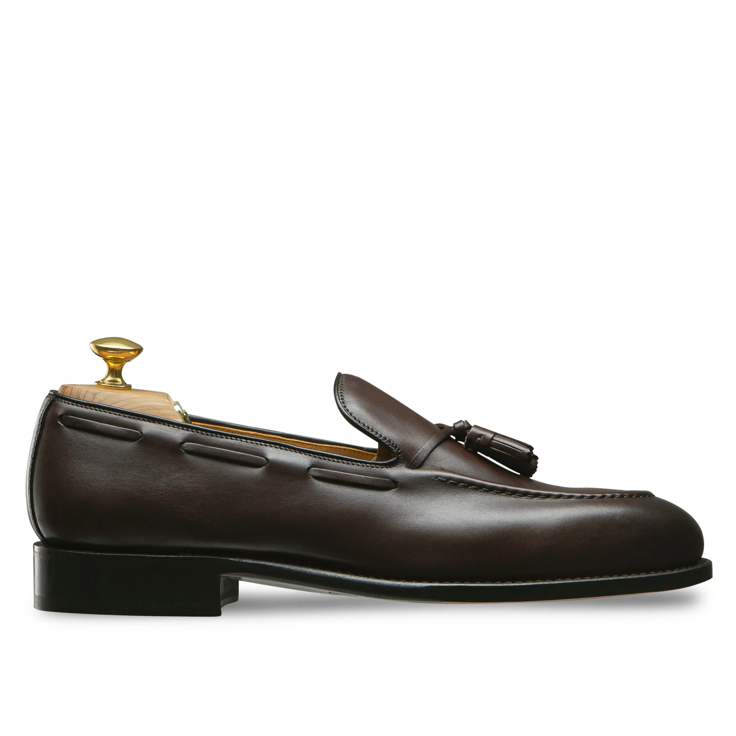 En vue d’assurer un confort de marche, ce mocassin à pampilles possède une semelle intérieure rembourrée et moelleuse. La semelle en cuir de la chaussure est en cousu Blake et présente un cambrion en relief type bottier.