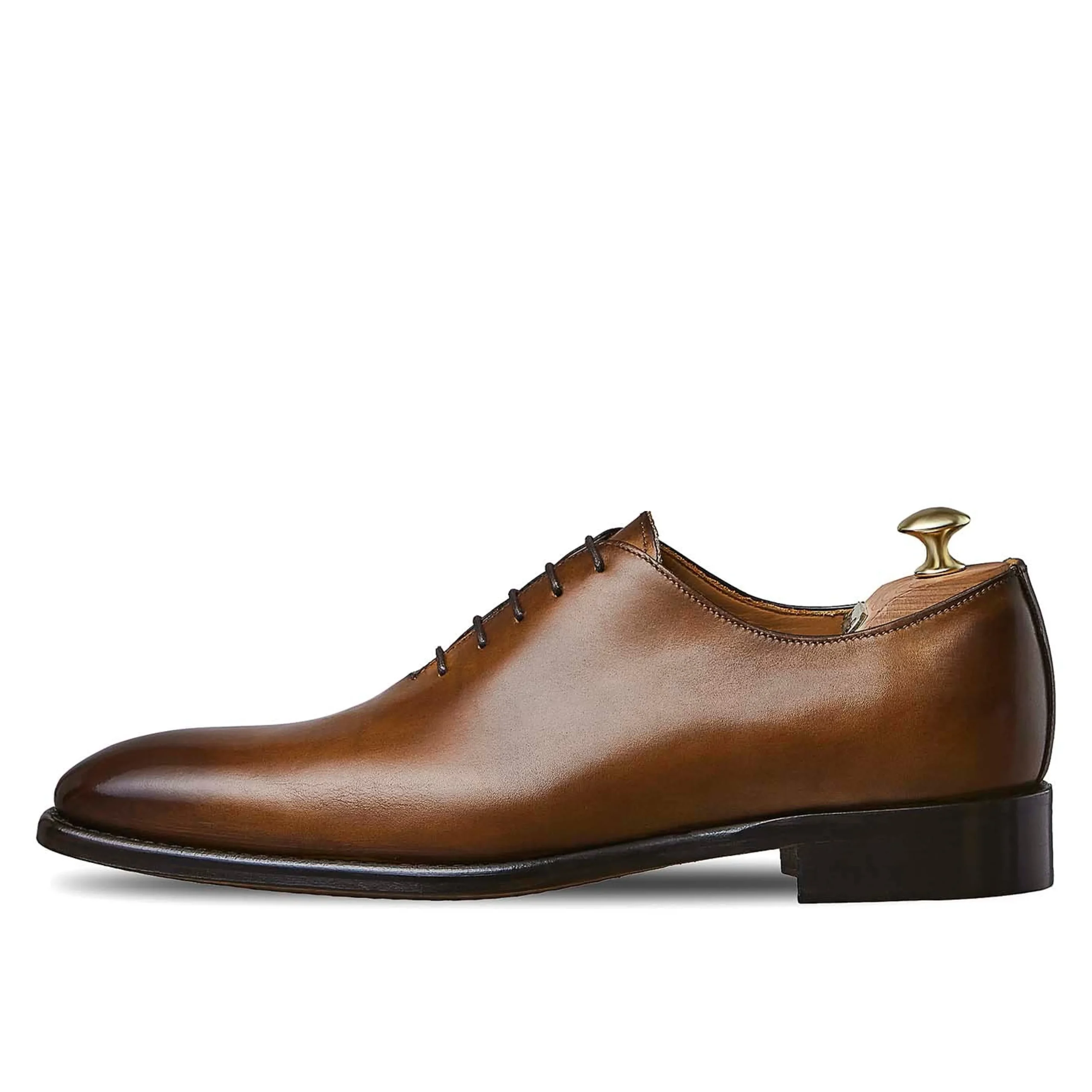 La simplicité de ce richelieu one-cut est sublimée par sa belle patine faite à la main par nos artisans.