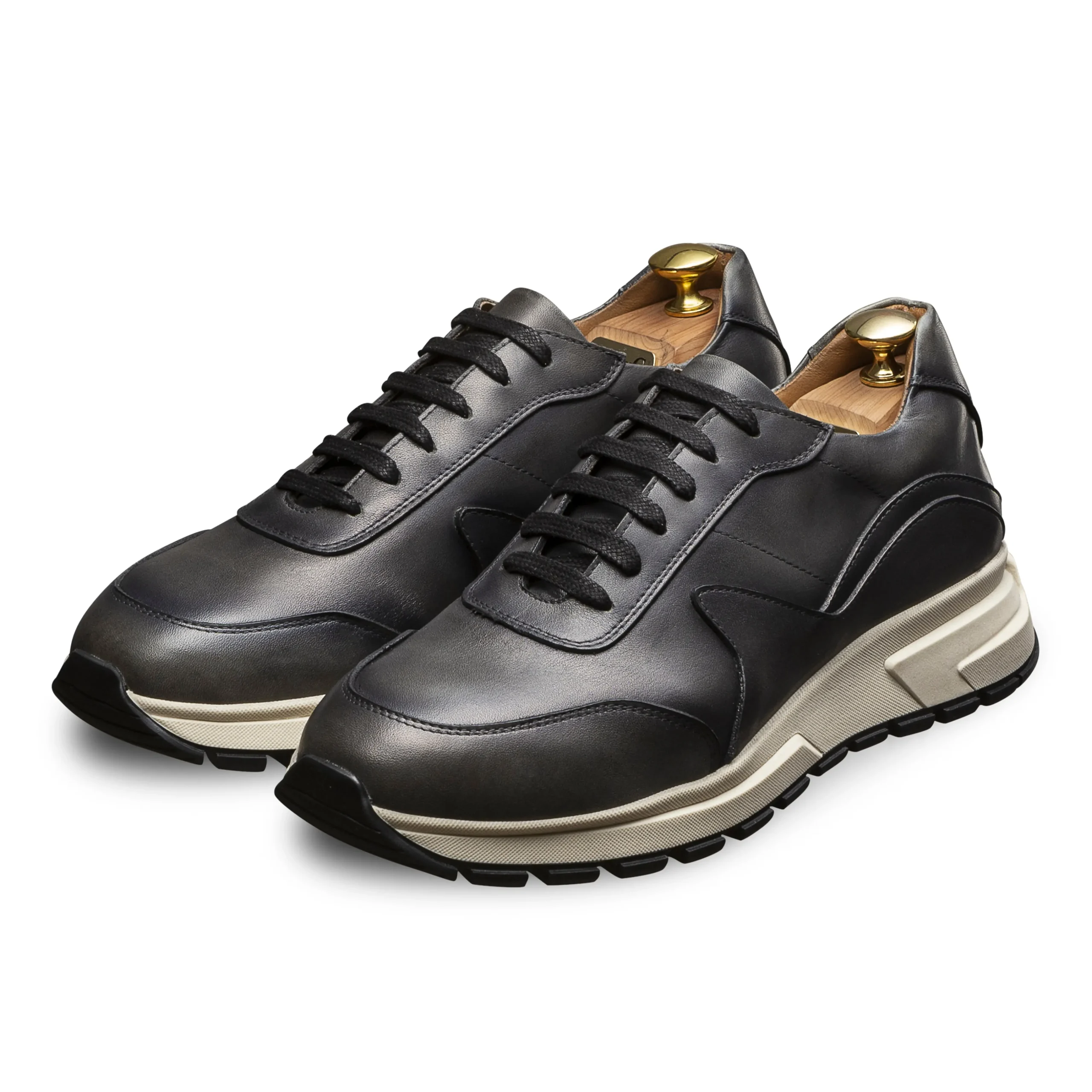 Sneakers 100% cuir pleine fleur confectionnés en Italie.