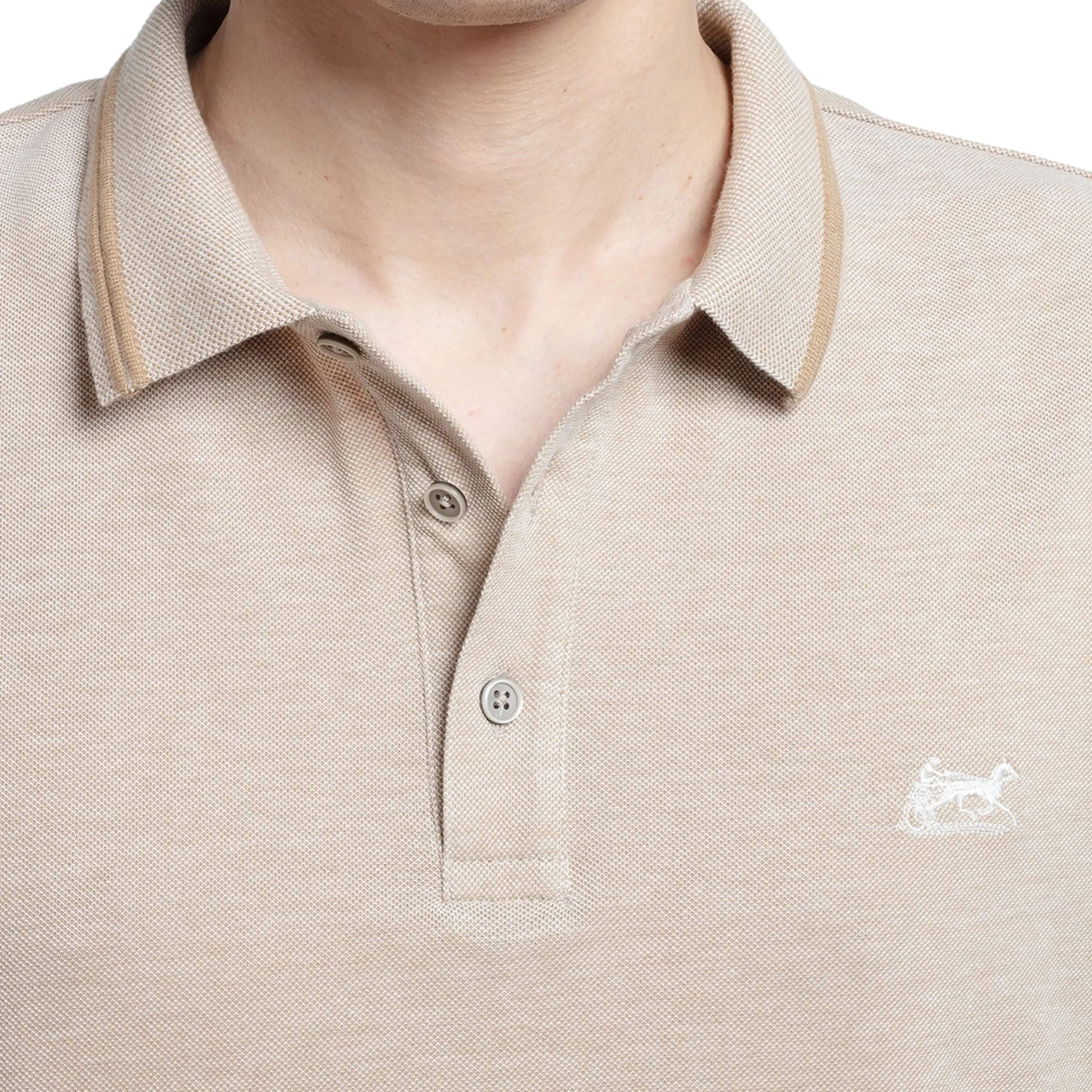 Le coton chiné donne une touche pastel au polo.