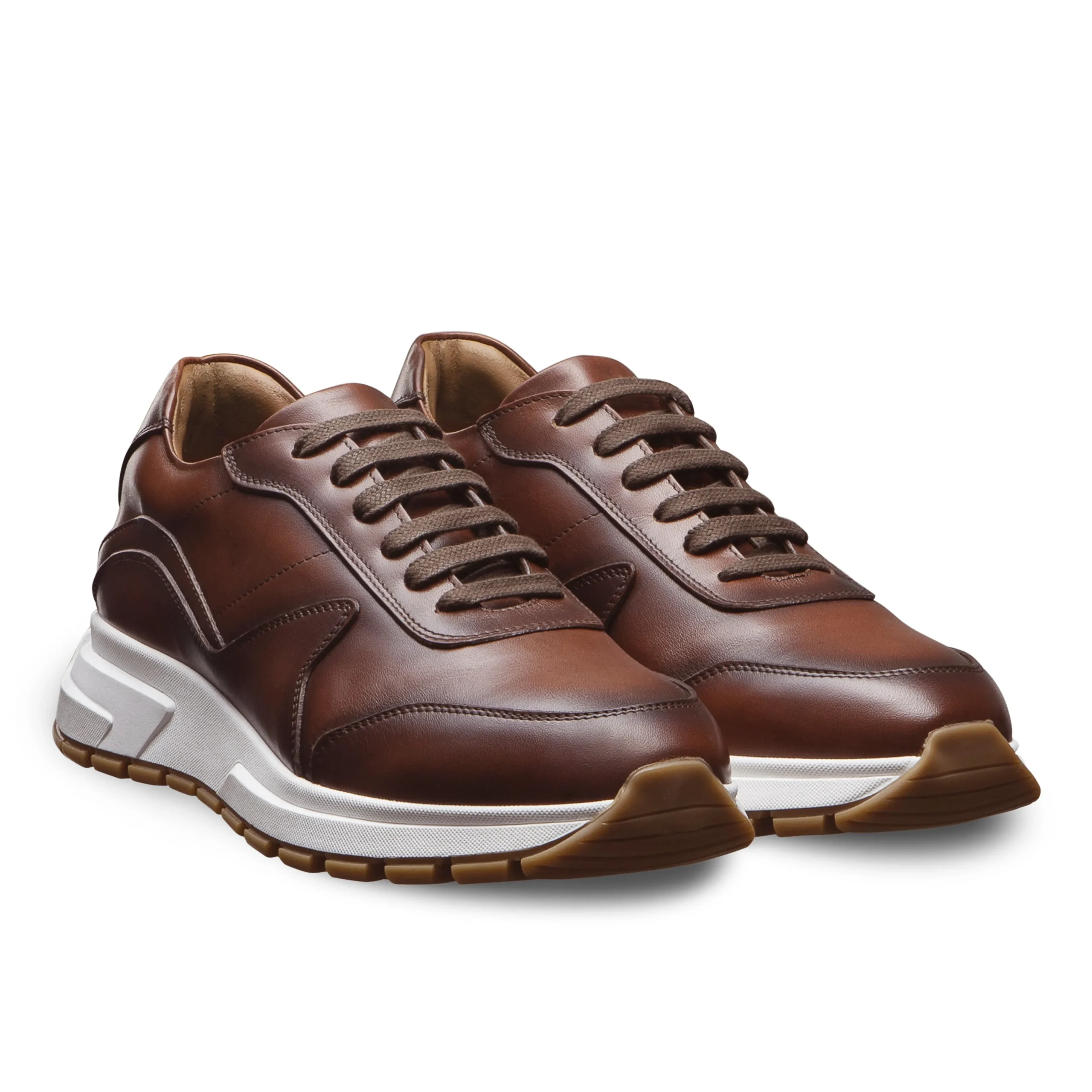 Sneakers 100% cuir pleine fleur confectionnés en Italie.
